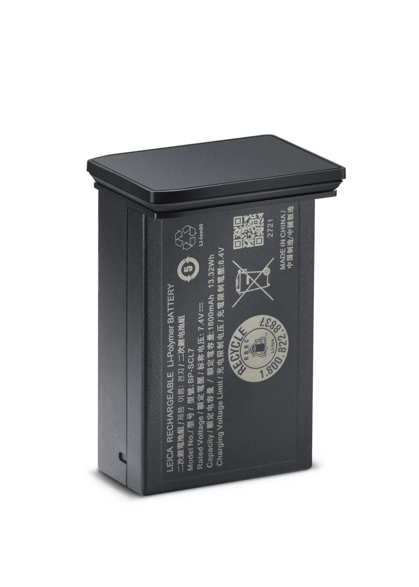Аккумулятор Leica BP-SCL7 емкостью 1800 мА·ч имеет емкость примерно на 64 % выше по сравнению с предыдущей моделью, что обеспечивает более длительное время работы между подзарядками, а также более быструю зарядку через порт USB-C. В результате: максимальная производительность батареи в компактной конструкции.